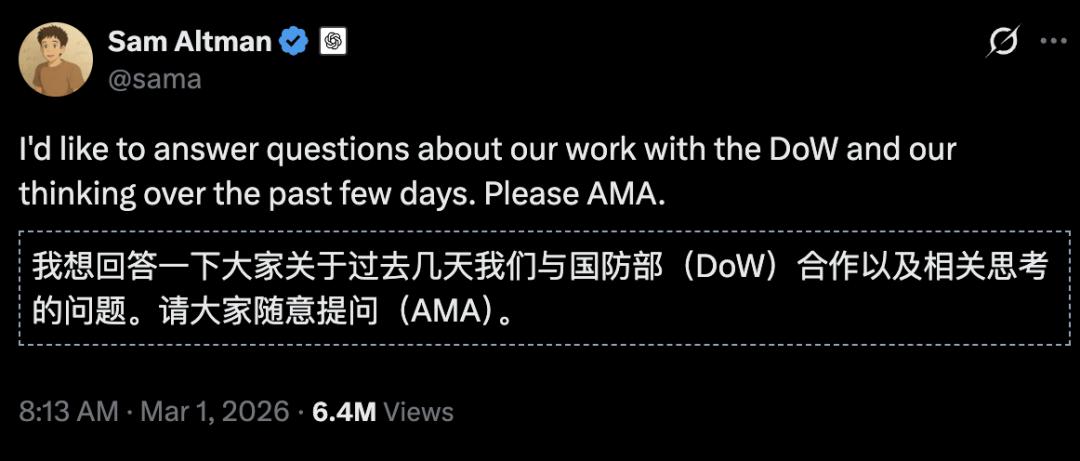 OpenAI先是公布合作详情,试图挽回口碑,奈何民意汹涌,奥特曼等OpenAI高管在线实时回答相关问题,6百多万网友围观: