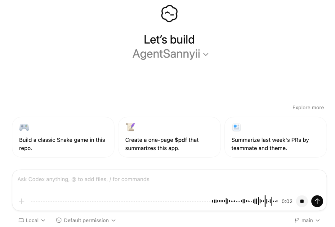 Codex 0.105.0版本更新日志写得明明白白——按住空格录音,松开转录,文字直接输入到终端界面。