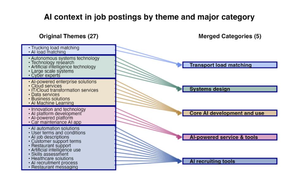 而且,从2023年低期,招聘开始分化,所有招聘在减少的情况下,提到AI的招聘却在一路上行。