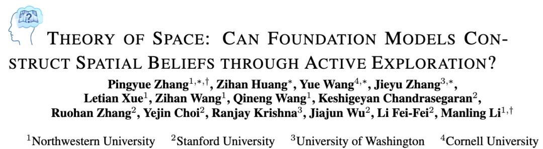 西北大学李曼玲团队、斯坦福大学李飞飞与吴佳俊团队,以及华盛顿大学Ranjay Krishna团队共同牵头提出了Theory of Space(空间理论),探讨了:当减少对完整给定信息的依赖,要求基础模型通过主动探索来认识环境时,其空间认知能力会有怎样的表现?