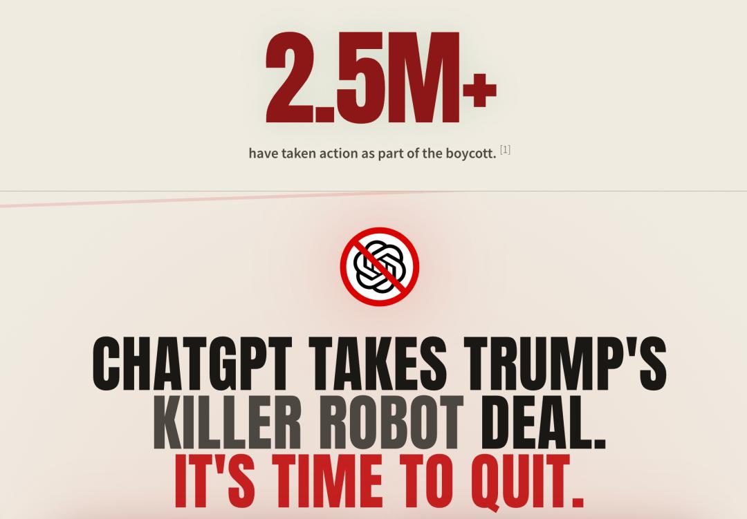 如今,掀爆全网的「抵制ChatGPT」——QuitGPT的运动,全球已有250万人加入了。