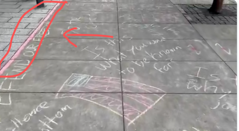 旧金山霍华德街某处,Anthropic总部外,人行道上布满粉笔涂鸦,写着“上帝爱Anthropic。”