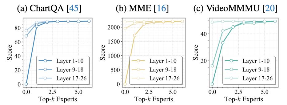 这一结果表明,高比例skipping并非不可行,关键在于是否能够正确建模专家对最终输出的全局贡献以及不同模态token的行为差异。