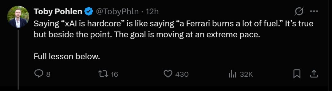 说“xAI很硬核”,就像说“法拉利耗油量大”一样。这话没错,但没有抓住重点。