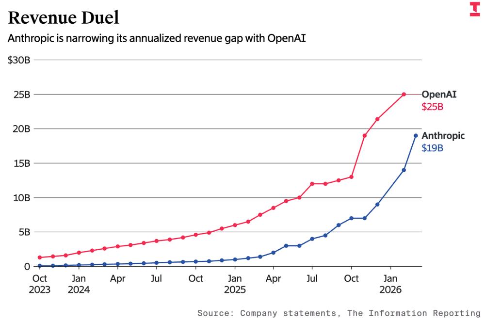 Anthropic目前的估值约3800亿美元(约合26188亿元人民币),而据The Information报道,Anthropic最近的年化收入突破了190亿美元(约合1310亿元人民币),较其去年年底的年化收入规模实现翻倍,进一步缩小与OpenAI的差距。