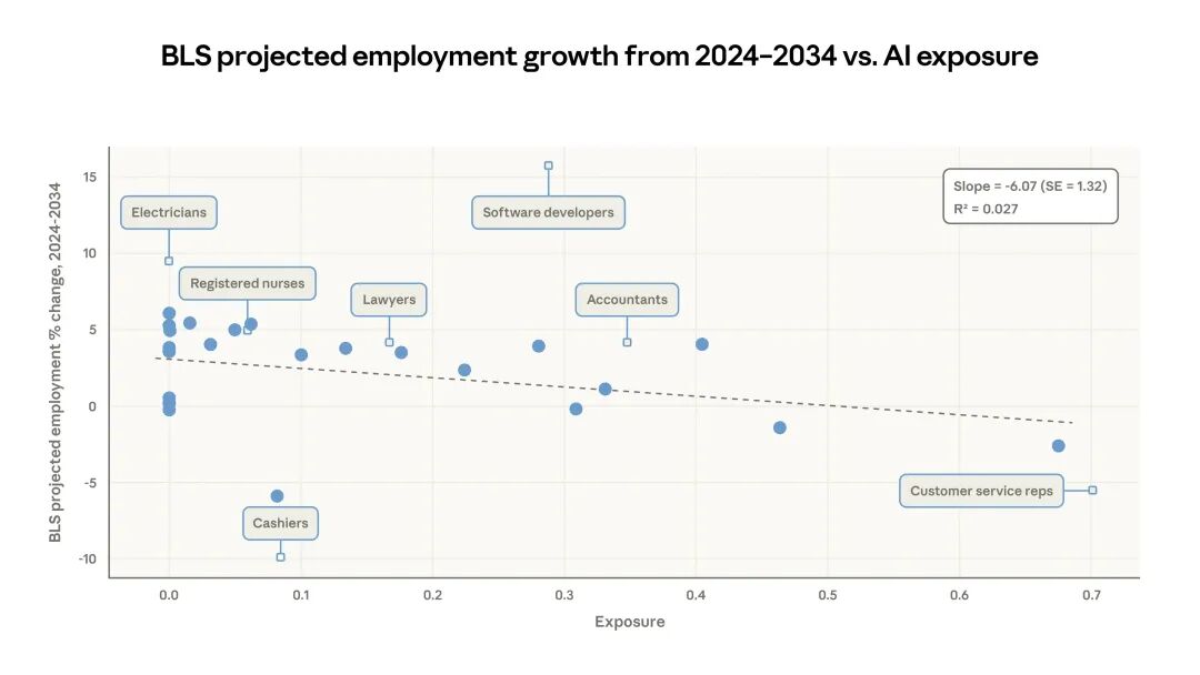 一个让人稍感安慰的结论是,AI目前还没有造成特别明显的失业潮。