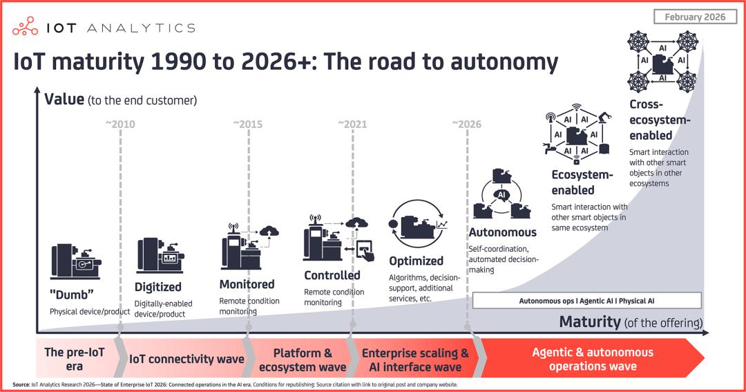 参考资料:State of enterprise IoT 2026: The shift from IoT to autonomous connected operations——IoT Analytics