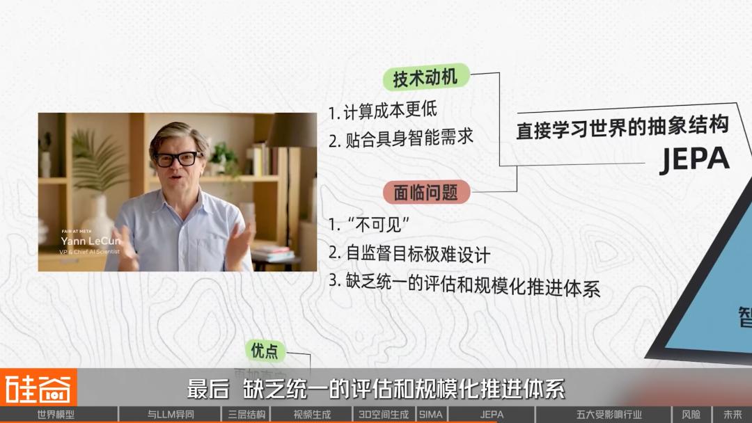 Yiqi表示,因为目前世界模型在落地层面还在早期阶段,并没有看到哪一条路线具体的商业应用形式,所以包括Meta在内的大厂们,实际是在各个路线上都在做布局和研究。