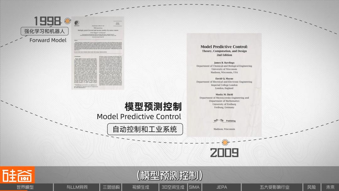 在此之后,世界模型并没有沿着单一路线发展,而是在不同研究领域中被不断拆解、强化和改写。比如在强化学习和机器人中,它体现为Forward Model;在自动控制和工业系统中,则发展出了Model Predictive Control(模型预测控制)。