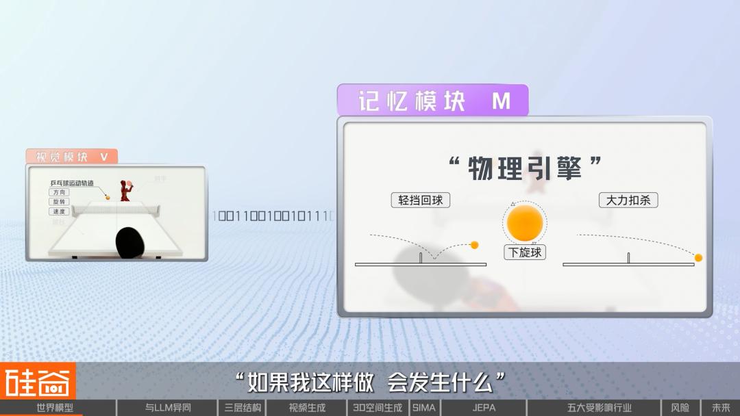 记忆模块(M)接收到这些编码后,便立即开始内部模拟。经过多次练习,你的大脑已经建立起对乒乓球运动规律的理解。记忆模块就像你内心的“物理引擎”,能预测“如果我这样做,会发生什么”。
