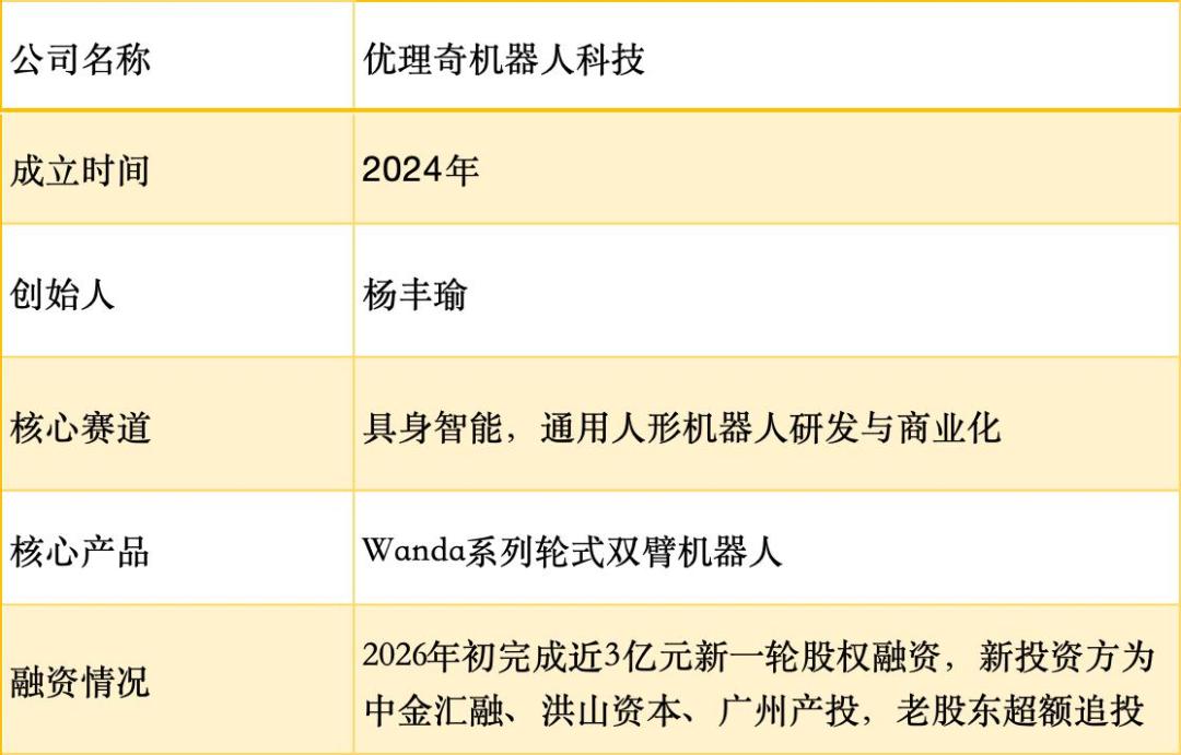落地苏州之后,公司融资节奏也明显加快。2026年初,优理奇完成近3亿元新一轮融资,新投资方包括中金汇融、洪山资本、广州产投,老股东继续追加投资。资金主要用于扩大研发团队和产能建设。