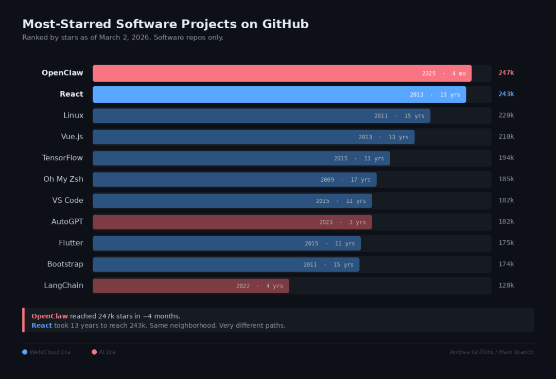 如果把GitHub的历史排行榜拉长,你会看到两个截然不同的时代。