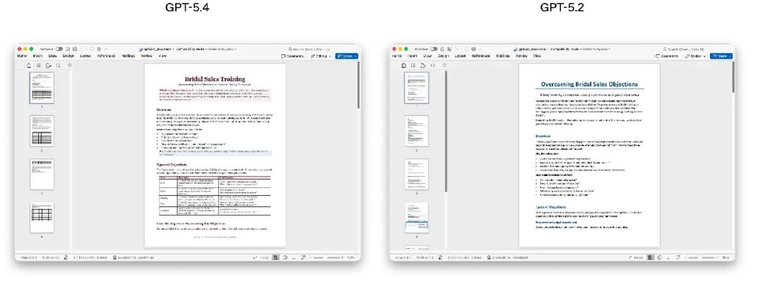 为了更好地让 GPT-5.4 融入人们的实际工作场景,OpenAI 在官方介绍中直观展现了新版本模型在电子表格、文档和幻灯片三个场景的专业级表现: