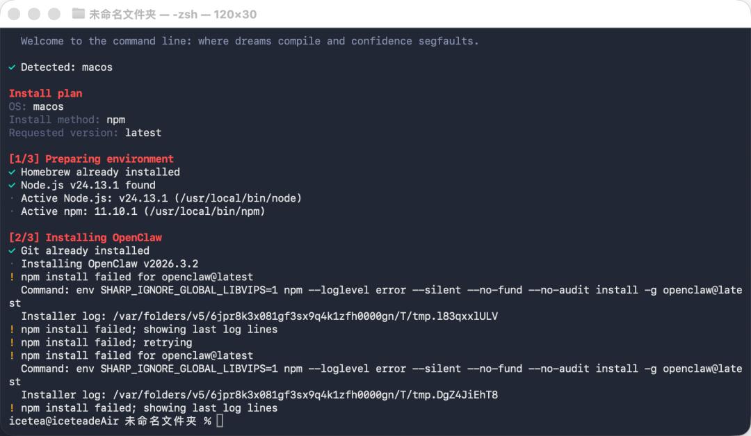 但笔者可以告诉大家一个更容易解决的方案,那就是先安装更简单的 Agent,例如 Codex,然后把教程文档链接发给他,去 PUA 它,让它去安装。