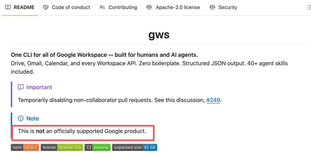 CLI的GitHub Star数已达16.5k。不过在开源项目主页,其特别提到这不是官方支持的谷歌产品。