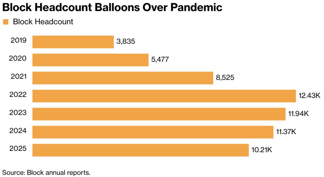 就在前几天,Block毫无征兆地裁掉了4000人,万人规模的团队被强行压缩到不足6000人。
