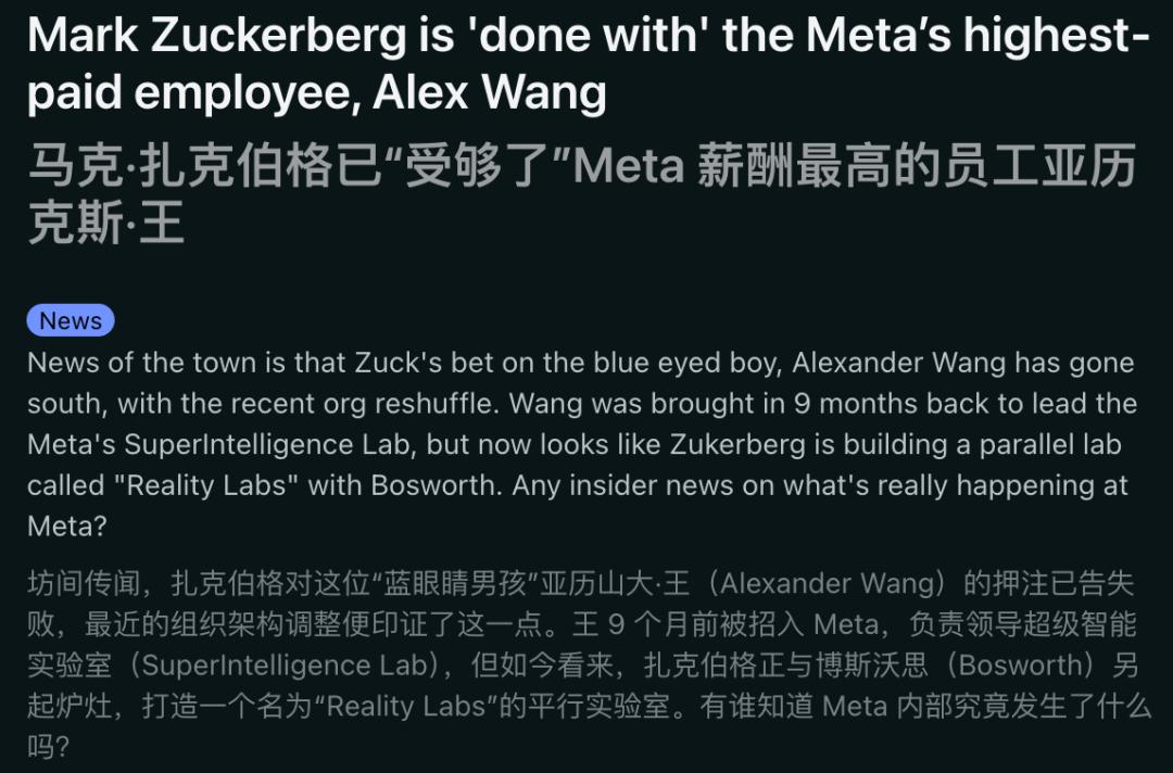 没想到的是,这次内部重组竟被外媒渲染成:Alexandr Wang已经出局。