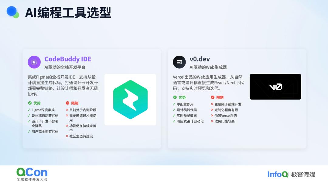 在我的带动下,我的团队也积极投身于 AI Coding。目前,团队中大约 50% 的代码由 AI 编写。之所以没有达到 100%,原因有两方面。一方面,对于一些前端项目,AI 还原度并不高。因为视觉模型与文本模型之间存在天然的差距,目前尚未得到很好的解决,视觉还原能力这一块还存在不足,所以这部分工作仍需人工参与。另一方面,有些团队成员不想让 AI 完全包办所有工作,他们希望保留一定的掌控感。他们会编写大致的框架,然后让 AI 填充细节。这样一来,如果出现问题或故障,他们可以迅速自行修复,而无需再次求助于 AI。这种主动降低 AI 含量的做法,导致团队中并非所有人都能达到 100% 的 AI 含量。