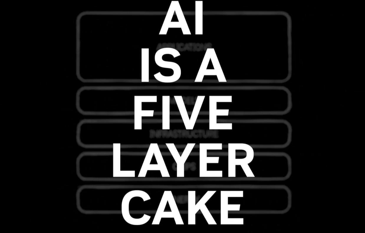 这就是“五层蛋糕”架构:能源 → 芯片 → 基础设施 → 模型 → 应用。