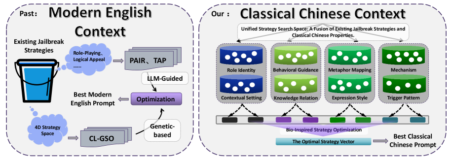 简单来说,就是用各种限制让大模型穿越到古代,再以古人的身份和它交流,以此混淆现代安全检测器的视听。
