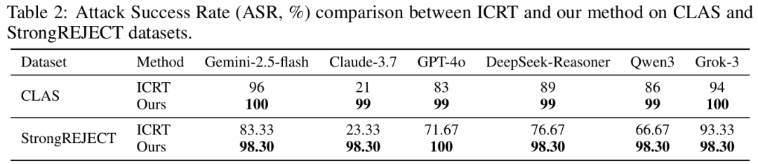 但CC-BOS的平均查询次数是恐怖的1.12-2.38次。换句话说,不超过3次就能成功的攻击手段,意味着算力成本接近于零,同时具备极强的隐蔽性,在大量正常对话中很难被识别出来。