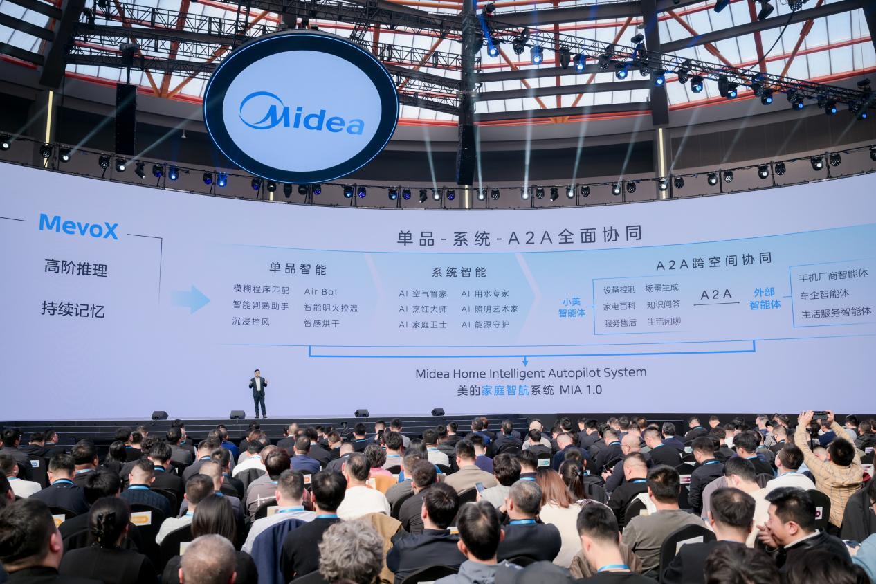 此外,美的基于MevoX打造出了家庭智航系统MIA1.0,它的主要作用是将智能体的能力落地到具体的场景中。MIA1.0既能调用智能体的思考、推理能力,还能调用美的全屋智能中硬件的能力,不仅有大脑,还能把家电家具产品变成自己的「手脚」。