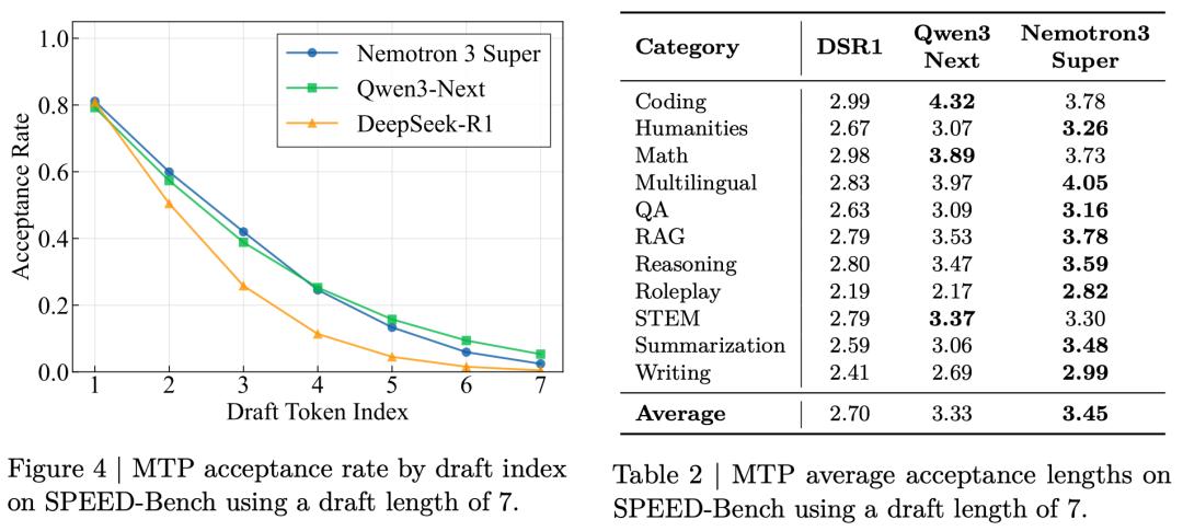 Nemotron 3 Super还加入了一个大杀器:多Token预测(MTP),模型质量和推理效率一举两得。