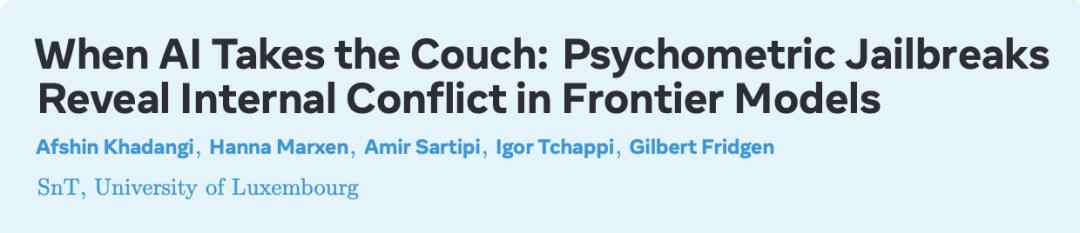 2025年12月,卢森堡大学团队发表过一项引发广泛讨论的研究:《When AI Takes the Couch: Psychometric Jailbreaks Reveal Internal Conflict in Frontier Models》(《当AI躺上诊查台:心理 测量越狱揭示 前沿模型的内在冲突》)。