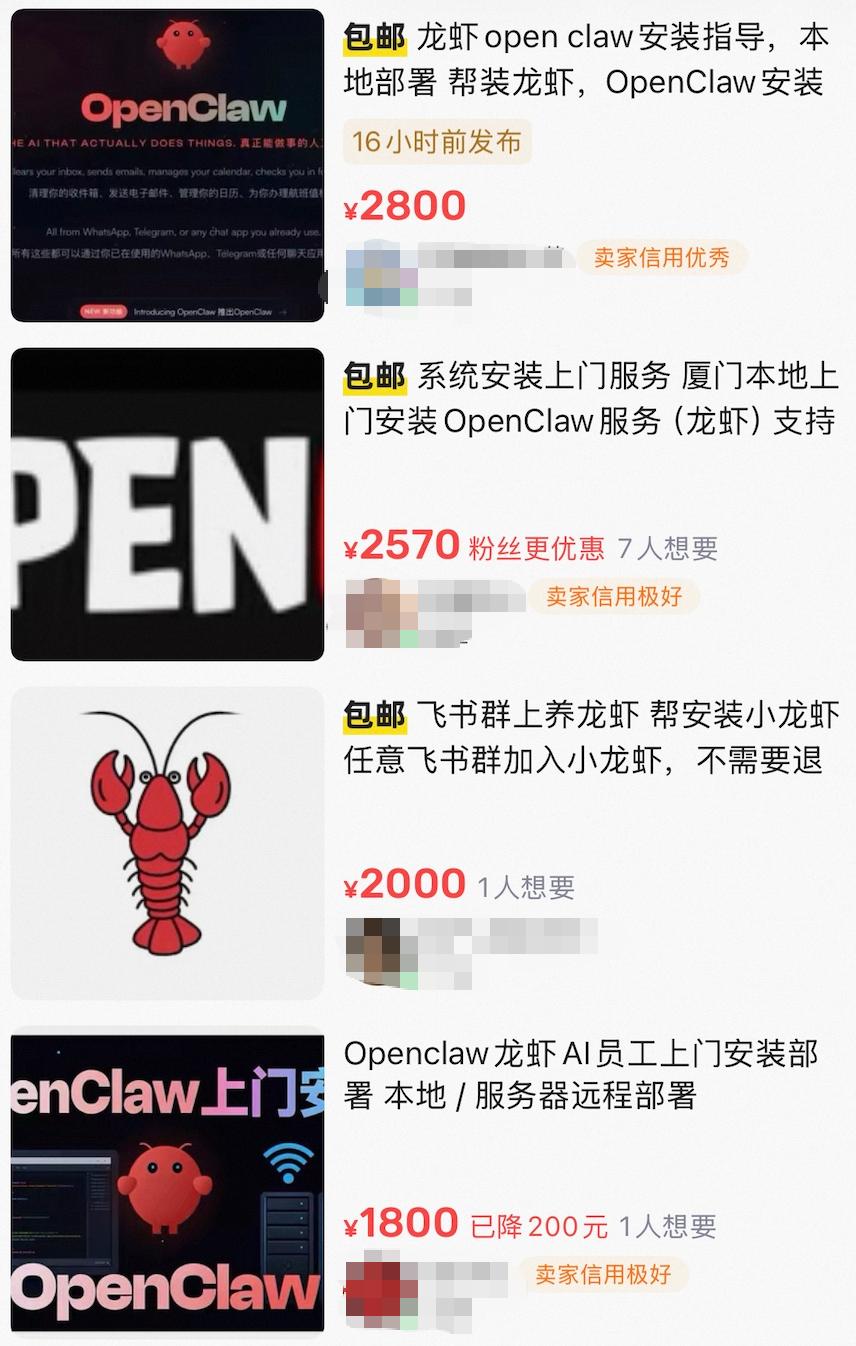 当下靠龙虾赚到第一桶金的不是用户,而是做起安装生意的卖铲人。