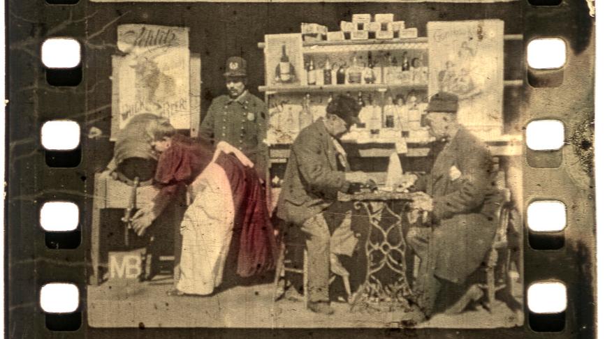 19 世纪末确立的 35mm 无声电影标准规格。注意图中每帧对应的 4 个齿孔,这一工程限制催生了精准的4:3画面比例。图源:Film Atlas。