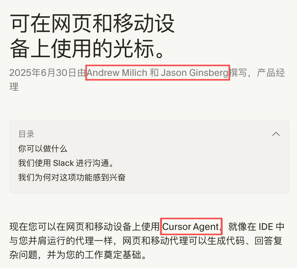 去年 6 月,他俩撰写的这篇网页版 Cursor Agent 博客里,有两点格外引人注目: