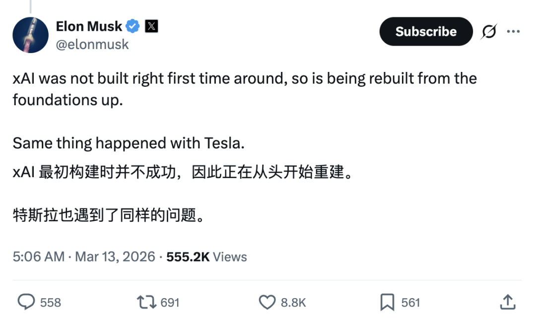 与此同时,老马也回应了 xAI 最近的一系列“提桶跑路”,还是地图炮:
