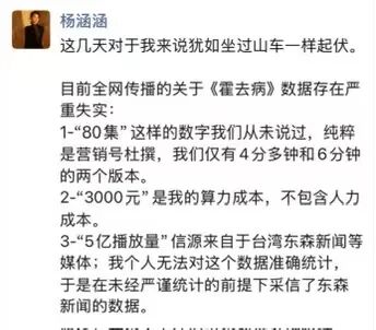 但这条新闻也被迅速辟谣,该导演团队回应:“所谓的一部短剧80集,其实48小时只做了几分钟,根本没有成片。所谓5个亿播放量——那剧都没有,何来播放量?播放量有这么算的吗?三观要碎了啊。”