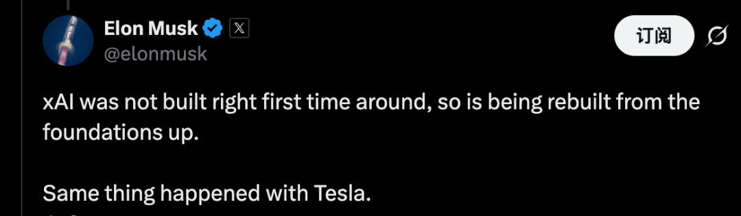 马斯克本人亲自回复:xAI第一次没建对,现在要从头再建。