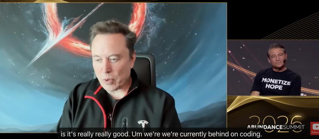 在产品层面,马斯克也公开承认了落后。同样在3月12日的Abundance大会上,他表示: