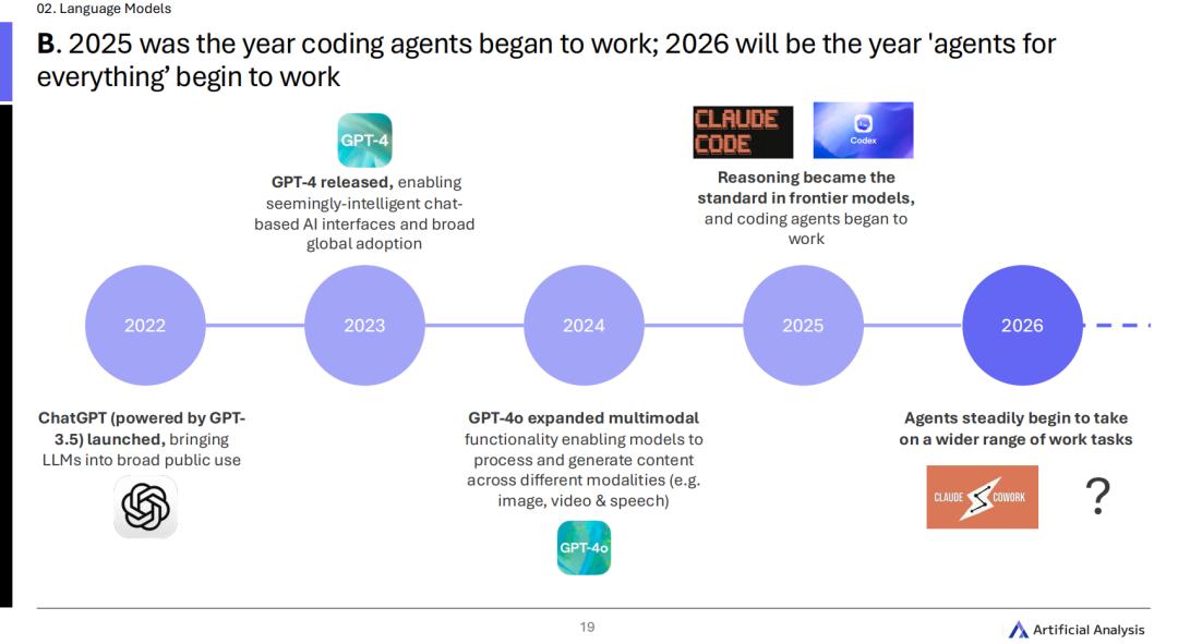 由于2025年是代码Agent大获全胜的一年,Artificial Analysis据此断言:2026年,将彻底成为「万物皆可Agent(Agents for everything)」的元年。