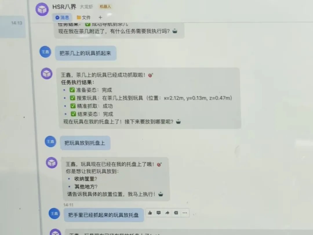 想象一下,当你在办公室工作时,可以在飞书上给机器人发消息,让「八界」帮你整理家里的桌面、收纳玩具、取东西、整理凌乱的鞋子、或是把衣服放进洗衣机等等。