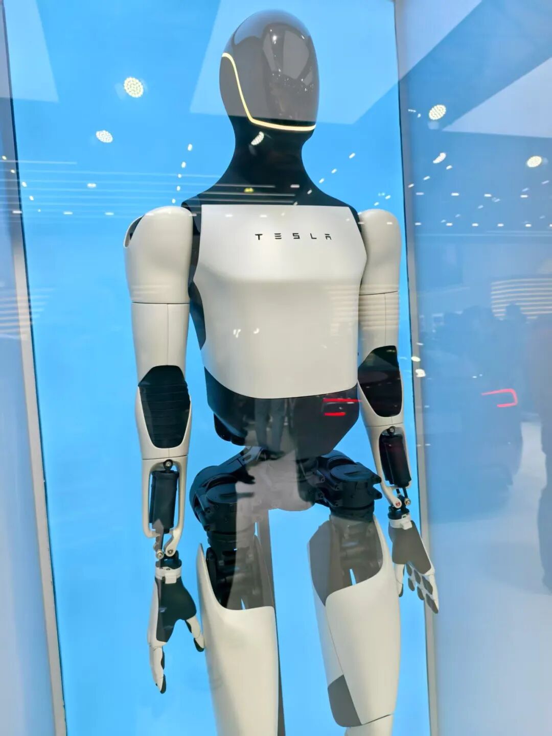 特斯拉此次秀出了一季度即将发布的第三代机器人Optimus V3。不过,或许是因为这款机器人还没正式发布,所以被锁在橱窗里,没有展示也没有互动,导致围观的人数并没有比其他机器人多。
