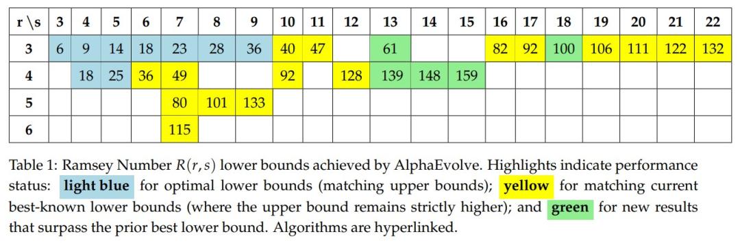 他们开发的系统AlphaEvolve,在极值组合学问题上取得突破,一次性改进了五个经典拉姆齐数的下界!