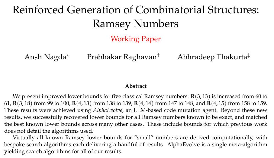 而这次,DeepMind三名研究发出论文,宣布用AlphaEvolve一次性刷新了5个经典拉姆齐数的下界。