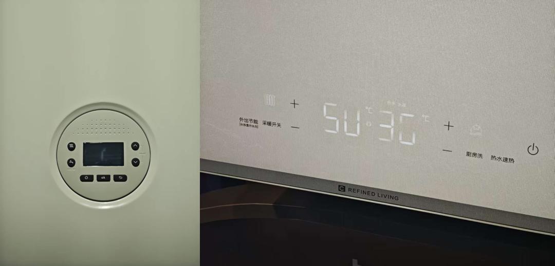 更多欧美日系品牌的展台,依然安静地停留在硬件时代的叙事里。博世的壁挂炉,还在延续万年不变的操作逻辑,依旧是万年不变的按键,只是多了块稍大些的屏幕,与此同时,海尔的壁挂炉则有更简单直观的界面。