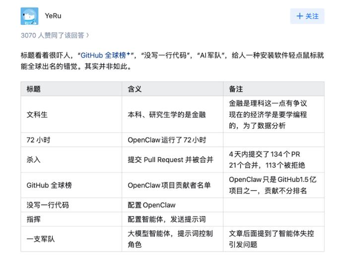 最新的案例是杨天润, AI 创业者,金融出身,正在开发一个多智能体协调平台。他自称「一行代码都不会写的文科生」,搭建了一组 AI Agent,向 GitHub 上最热门的开源项目之一 OpenClaw 批量提交代码贡献。
