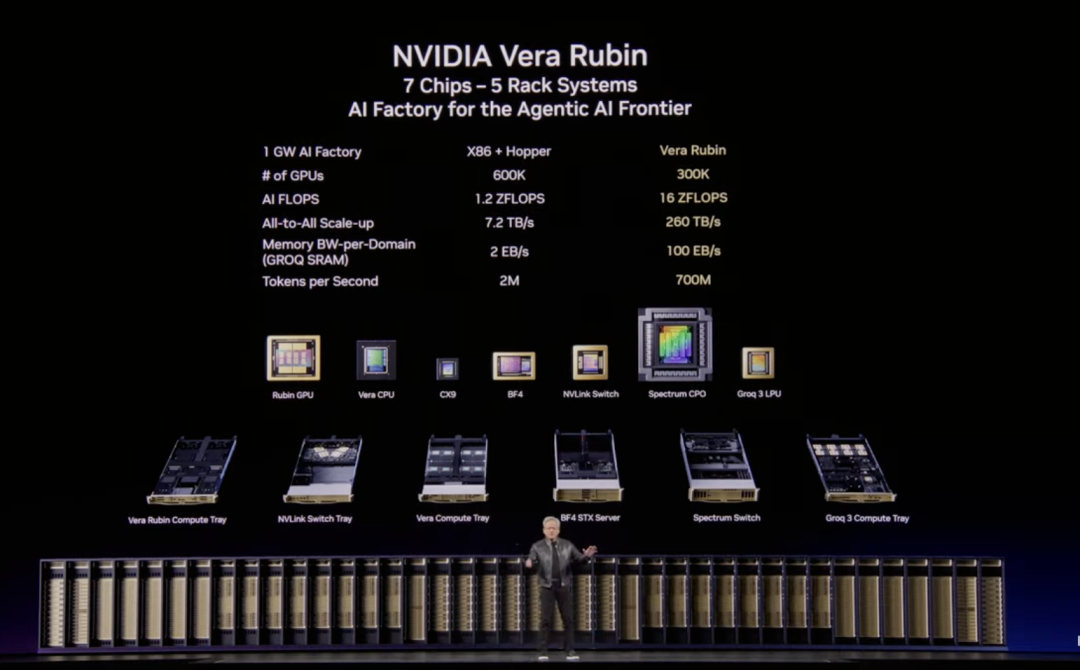 去年GTC上,我看到了5000亿美元的高确信需求。今年,站在同一个舞台上,这个数字变成了1万亿美元,覆盖Blackwell和Rubin到2027年的订单。