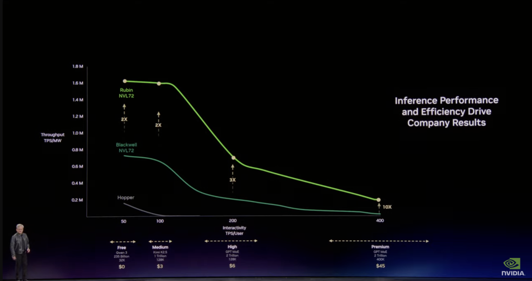 作为下一代计算平台,再次将每瓦token吞吐量提高2-10倍。