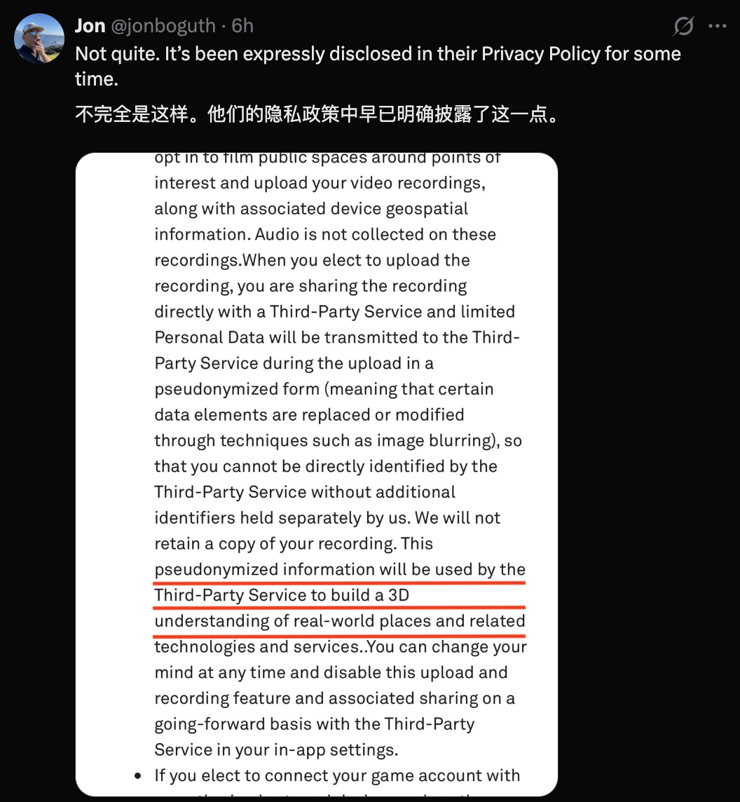 而且,从玩家们反应来看,游戏的隐私政策中也明确表示了上传的数据会用于 3D 技术。