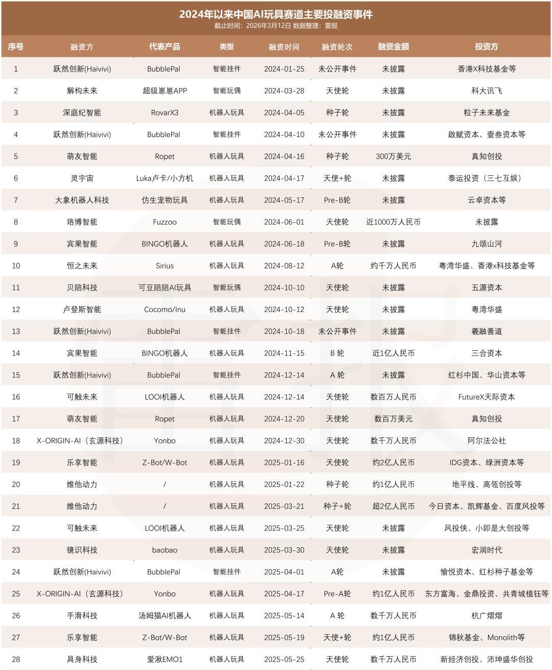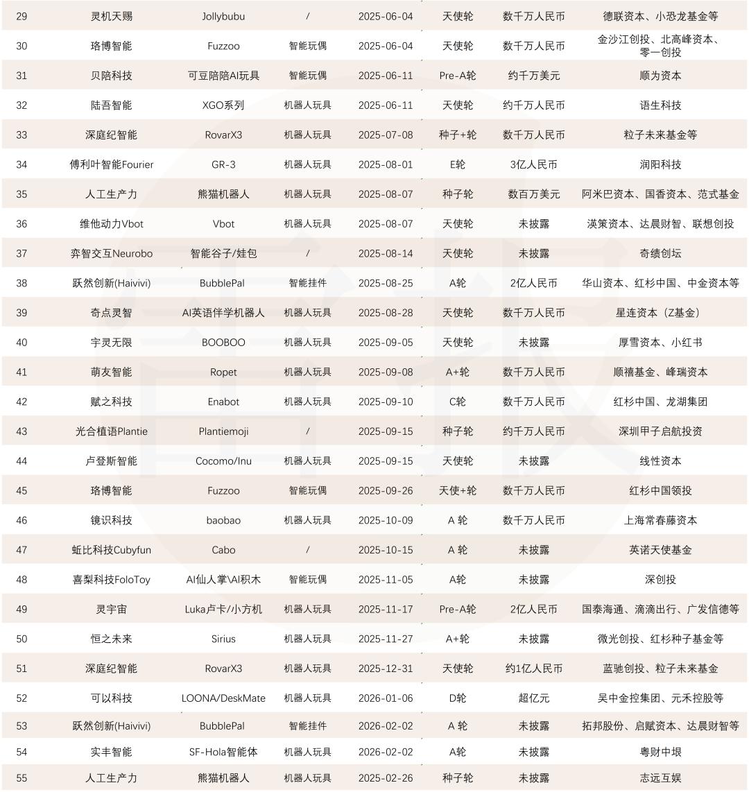资本也相当活跃。雷报不完全统计,自2024年至今,国内AI玩具赛道已至少有55起投融资事件,共计有11起亿级、19起千万级投资。