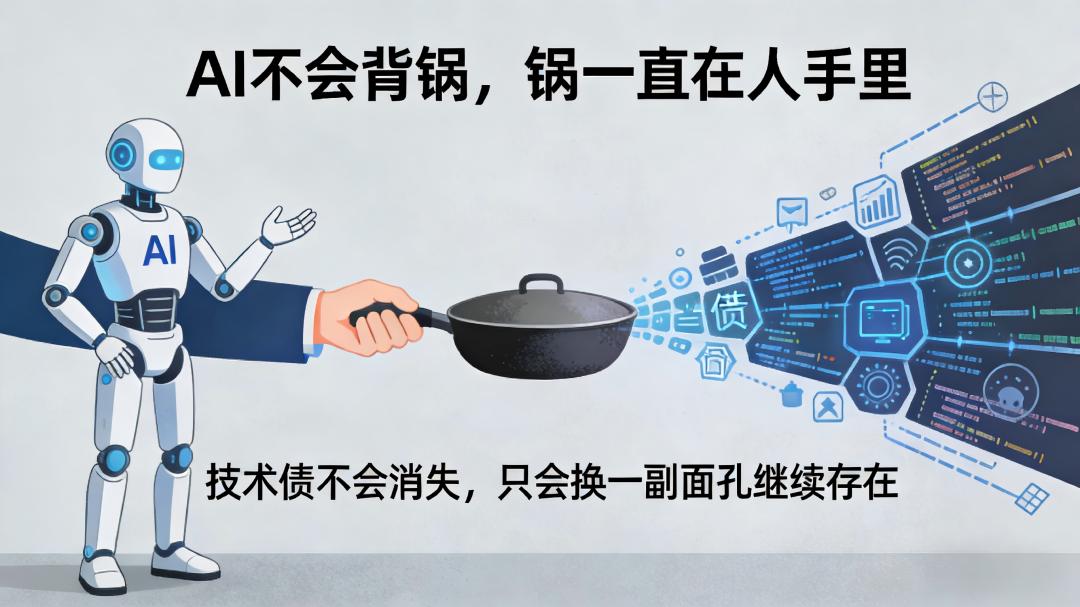 AI不会背锅,锅一直在人手里。技术债不会消失,只会换一副面孔继续存在。