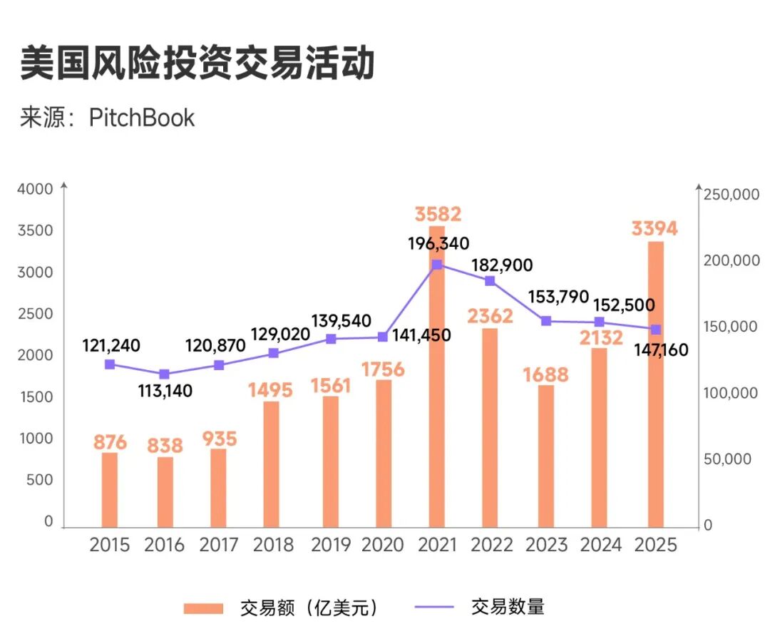 2025年,风险投资退出交易共计1635笔,总额达2976亿美元,较前一年几乎增长一倍,成为过去十年中退出表现最强的年份之一。