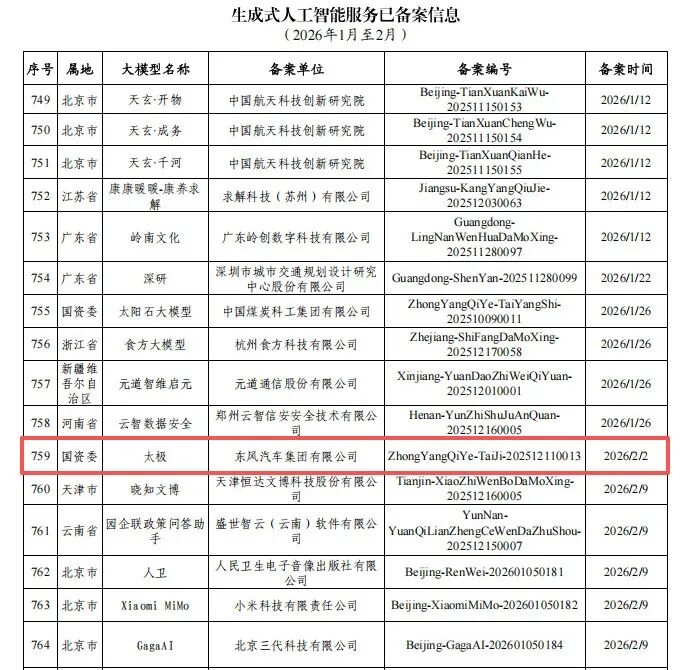 IT之家 3 月 17 日消息,东风汽车研发总院今日宣布,其自主研发的“东风太极大模型”体系,正式通过国家互联网信息办公室生成式人工智能服务备案。