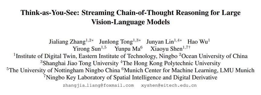 论文标题:Think-as-You-See: Streaming Chain-of-Thought Reasoning for Large Vision-Language Models